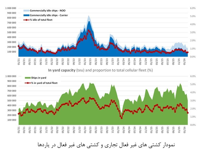 بر اساس این گزارش، از آغاز سال جاری ناوگان غیرفعال تجاری تنها ۰.۵ درصد از کل ناوگان کانتینری را تشکیل داده است که پایینترین سطح از آگوست ۲۰۲۵ محسوب میشود.